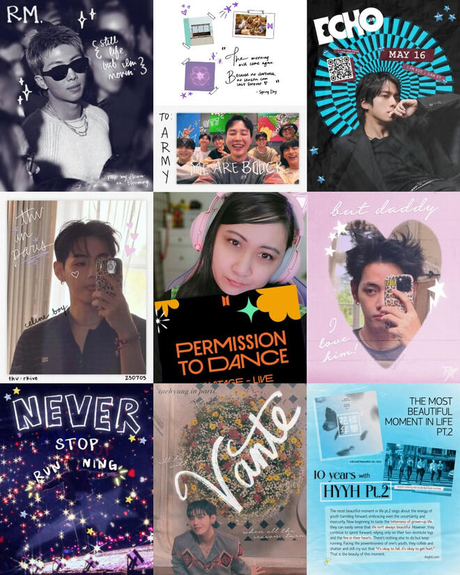 i worked as a video editor + content creator (late 2022-early 2024) for Private Paradise Co.—a kpop fanmerch small biz!check out my playlist of BTS content on youtube + tiktok including the BTS Bulletin [YT / TT]—my signature weekly series of the top BTS news + updates 💜